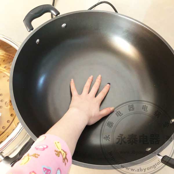 純鐵鍋,非常厚實(shí),很有分量,很重,比普通電熱鍋重很多。我這是一口標(biāo)注為34CM的鍋,實(shí)際測(cè)量外徑36厘米,內(nèi)經(jīng)34厘米,沒(méi)有尺寸誤差,鍋形弧度很大,炒菜等操作很方便。
