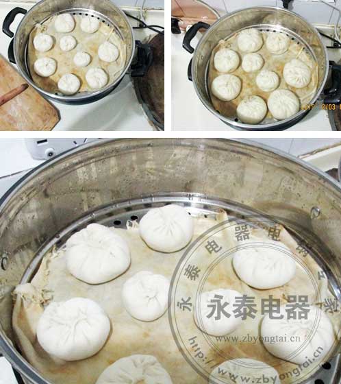 既然配有蒸籠,那我們就要蒸一下包子試試,鍋內(nèi)放水,包子放在蒸籠內(nèi)蓋上鍋蓋,打開(kāi)三個(gè)加熱檔位,十幾分鐘左右很快就蒸好了,蒸好的包子又大又香,超級(jí)方便。