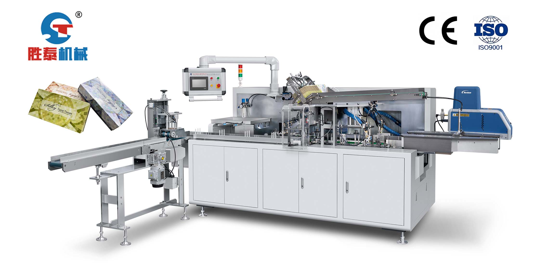 產(chǎn)品概述:紙巾自動(dòng)裝盒機(jī)主要用于衛(wèi)生用品、日用品等產(chǎn)品紙盒折盒包裝。本機(jī)器采用一系列的機(jī)械傳動(dòng)和光、電、氣的配合來(lái)自動(dòng)完成送料、分料、送盒、開(kāi)盒、裝物料、檢測(cè)、噴膠、封盒、剔廢及成品輸出等工序完成產(chǎn)品裝盒。